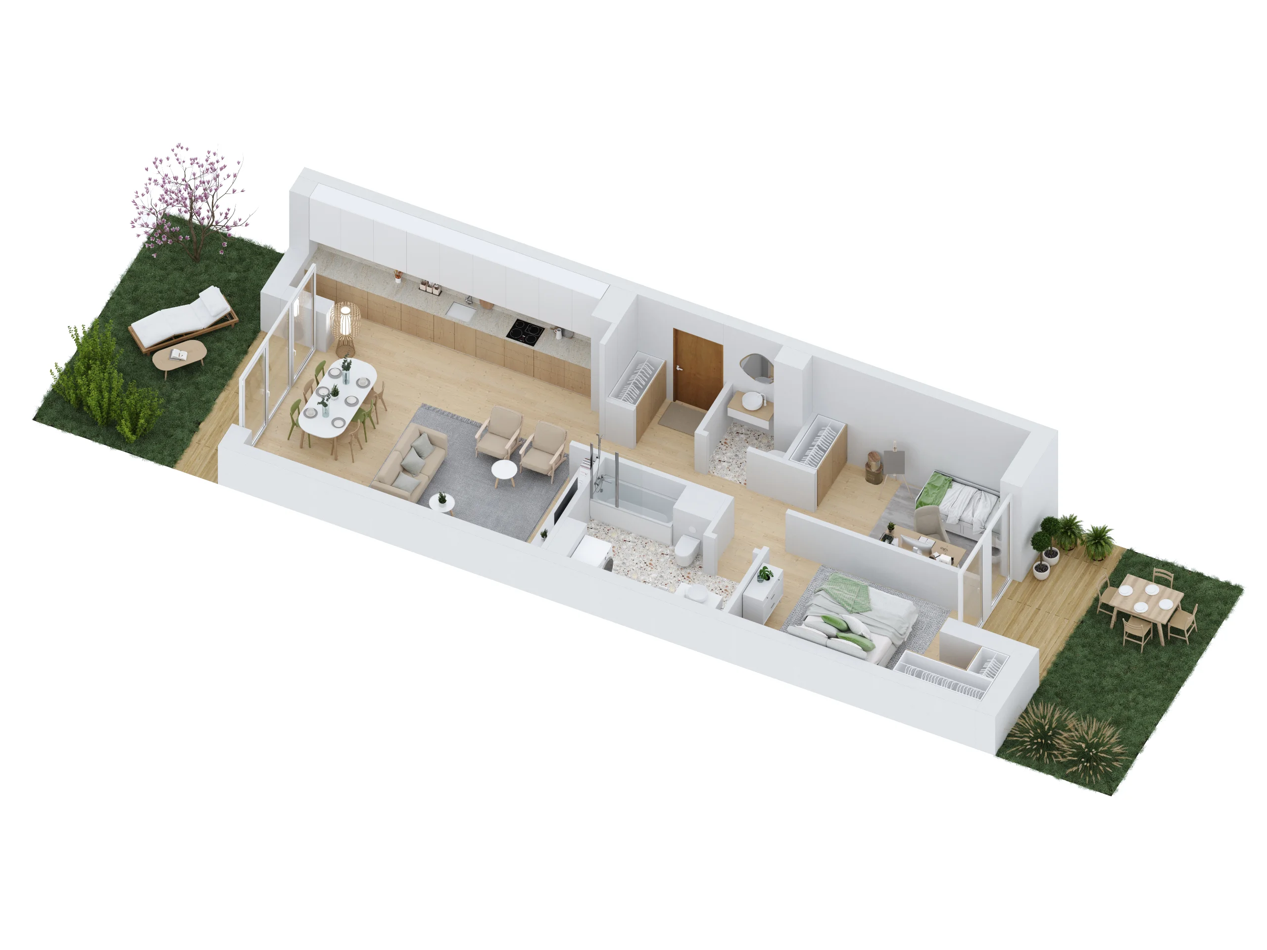 Tulipanowe Ogrody zostały zaprojektowane z dbałością o detale i trwałość. Materiały premium, nowoczesne technologie budowlane i energooszczędne rozwiązania sprawiają, że inwestycja spełnia wymagania nawet najbardziej wymagających klientów. Zastosowanie dużych przeszkleń gwarantuje doskonałe doświetlenie wnętrz, a ergonomiczne układy mieszkań pozwalają na pełną funkcjonalność.