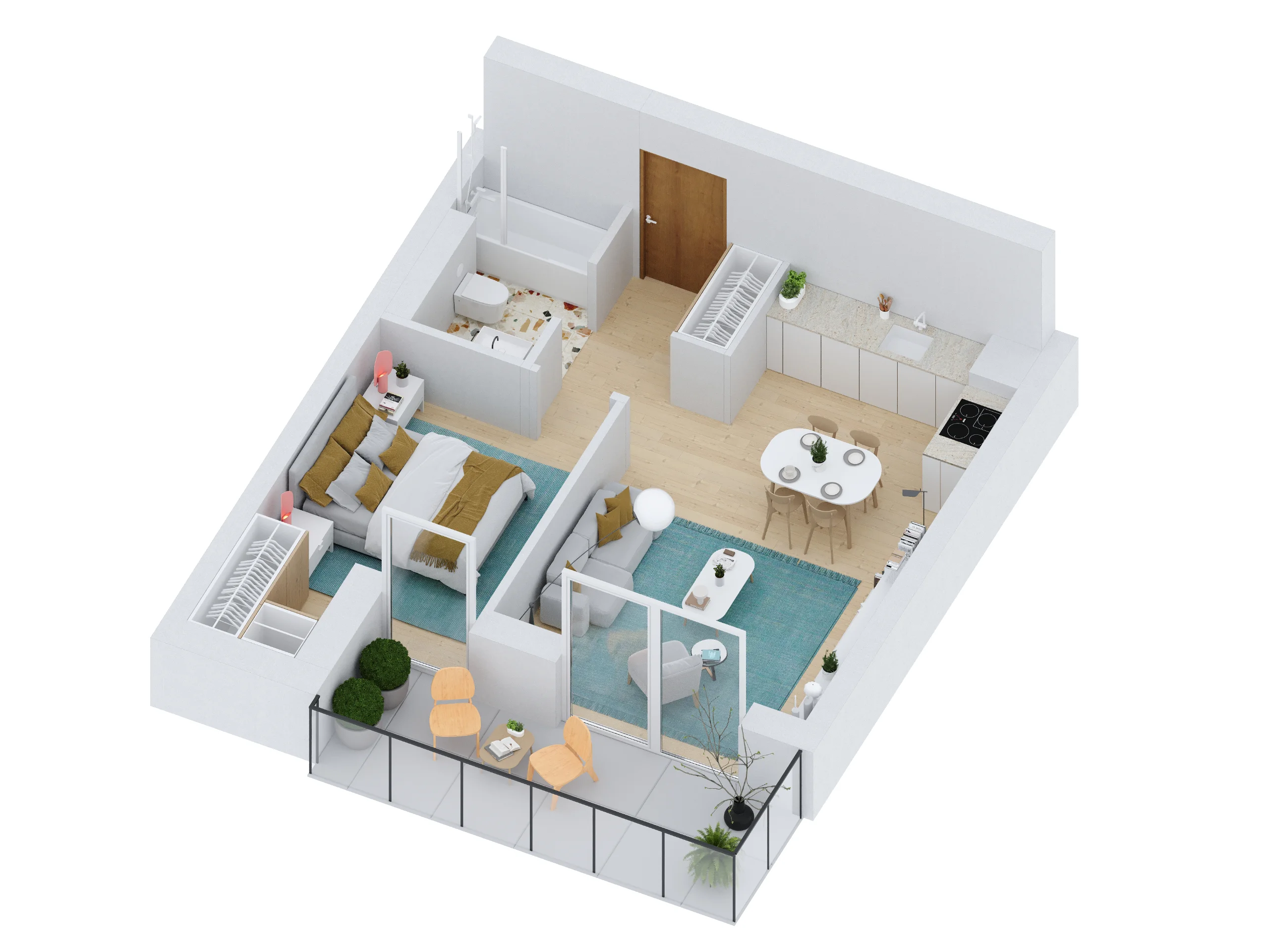 Budynek o czterech kondygnacjach został podzielony na dwie kameralne klatki schodowe, co zapewnia wygodę mieszkańców i poczucie prywatności. W ofercie znajdują się mieszkania o zróżnicowanych metrażach – od funkcjonalnych kawalerek 30 m², przez mieszkania rodzinne 50–70 m², aż po przestronne apartamenty 100 m². Tak szeroki wybór pozwala idealnie dopasować lokal zarówno dla singli, par, jak i rodzin z dziećmi czy inwestorów szukających nieruchomości pod wynajem.